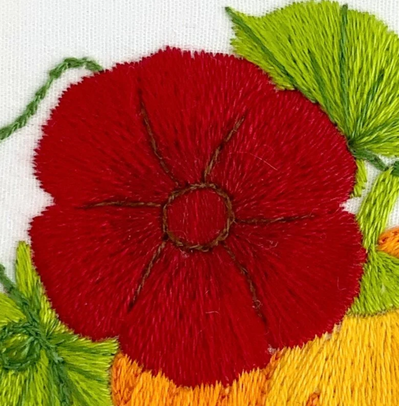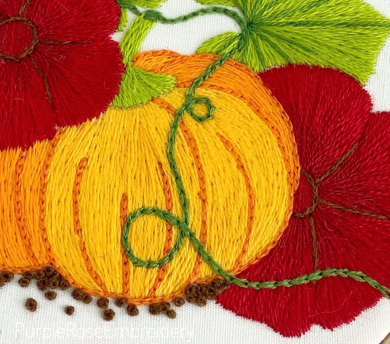 This pumpkin embroidery pattern is great for those with some experience of thread painting or with a determination to learn!